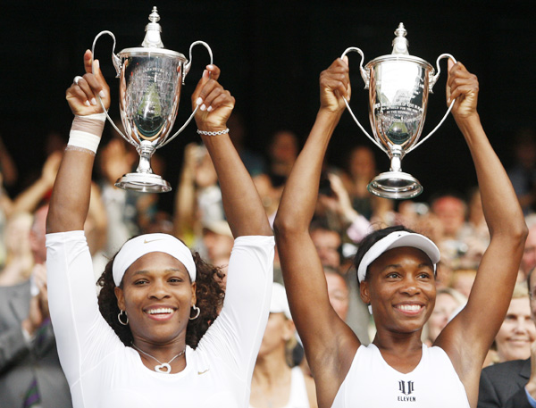 (사진: 복식 우승 후 트로피를 들고 있는 세레나와 비너스)